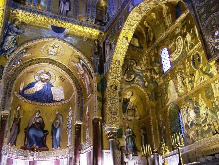 It was built by a Norman king in the 1160s in a real mix of styles: Greek mosaics