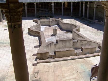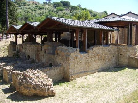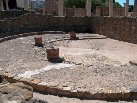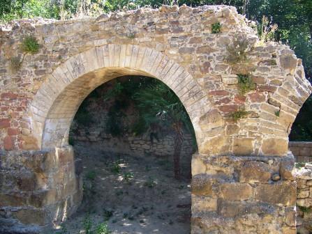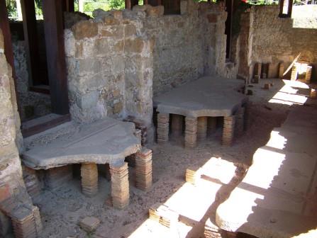 It is the ruin of a late Roman villa. It seems to have been a hunting lodge