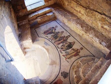 is higher than the others, and underneath it is another mosaic.)