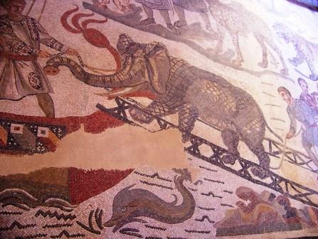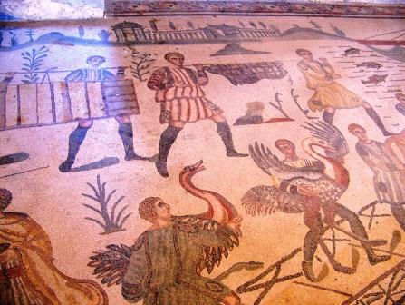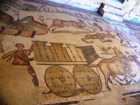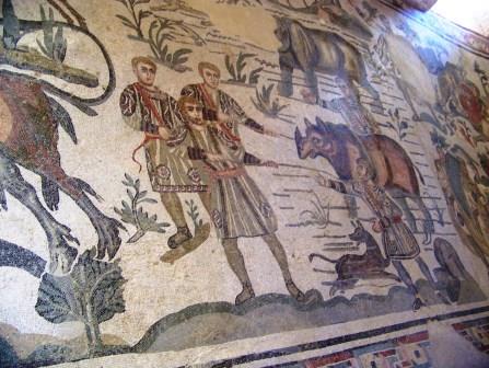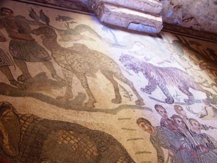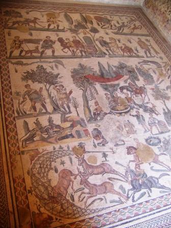 This room is known as "The Little Hunt" room, because of its intricate mosaic of hunting various wild animals.