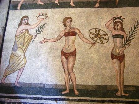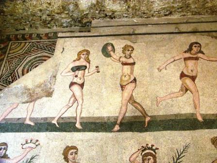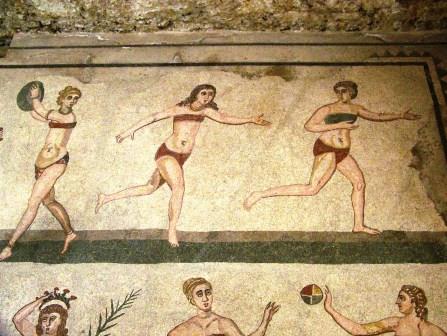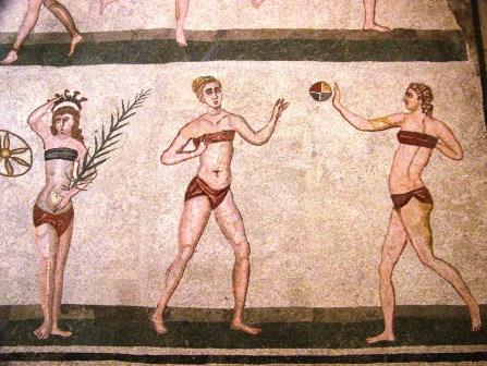 had a mosaic of women wearing bikinis and playing ball games. The winners are