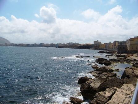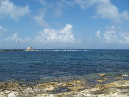Between the island and the mainland of Sicily is a shallow lagoon where sea