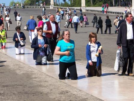 plaza on their knees. Nearby were vendors selling all kinds of religious souvenirs.