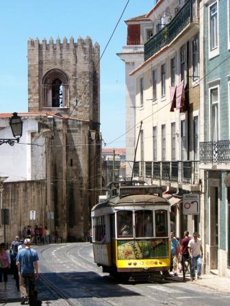 Below the castle is the oldest part of Lisbon, called the Alfama district. Streetcars help with the steep hills.