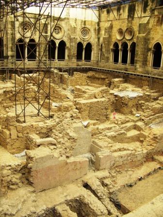 An archeological dig was going on in the middle of the cloister.