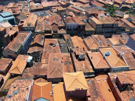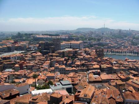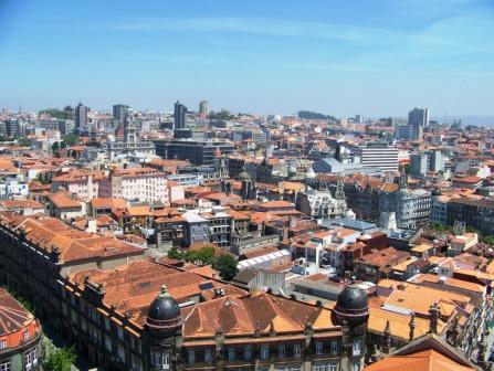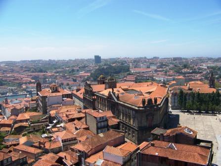 From the top of the Torre dos Clérigos (Tower of the Clergy, 246 feet high, above middle) are sweeping views over Porto.